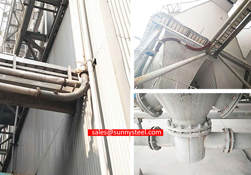 根据不同工况的具体情况选用不同型号的不锈钢。常用材料有:TP321 (Cr18Ni9Ti)、TP309S (Cr23Ni13)、1Cr20Ni14Si2、TP310S (Cr25Ni20)、1Cr25Ni20Si2,部分低温区(如低温过热器、低温再热器)采用1Cr13、1Cr6Si2Mo等材料。